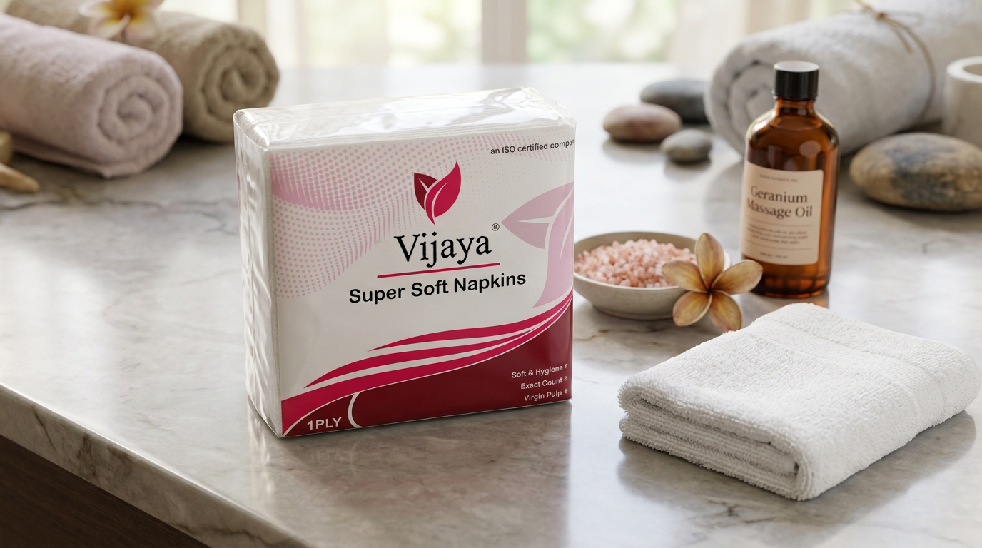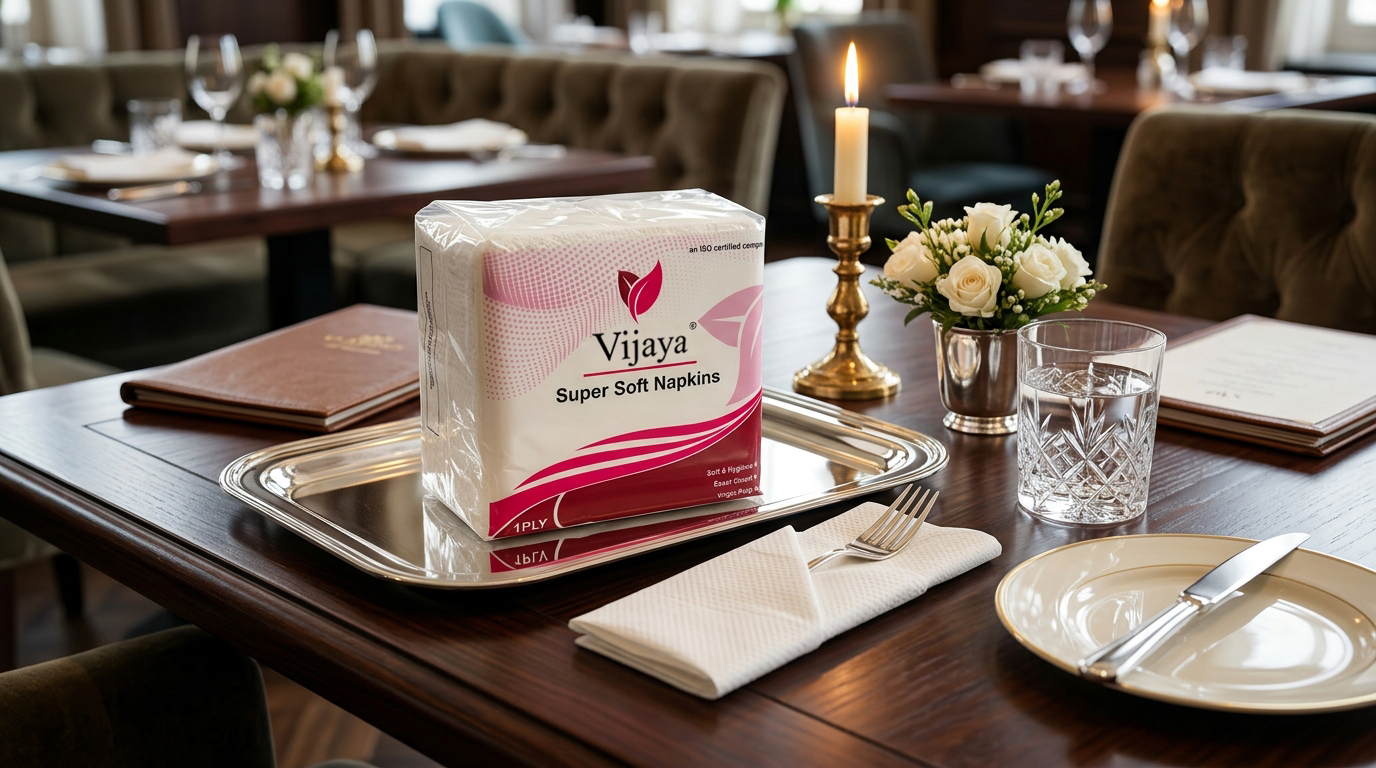 Vijaya Napkins are made from soft, strong, and highly absorbent paper, providing a hygienic and convenient solution for everyday dining and cleaning needs.