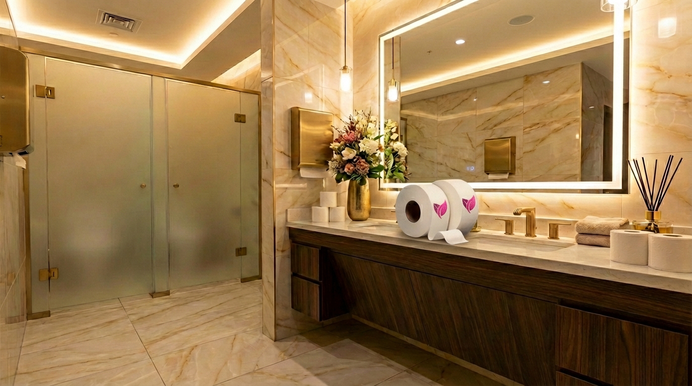 Vijaya Jumbo Roll Tissues (JRT) are designed for high-capacity and hygienic washroom use, offering strong, soft, and highly absorbent tissue for efficient cleaning and drying.