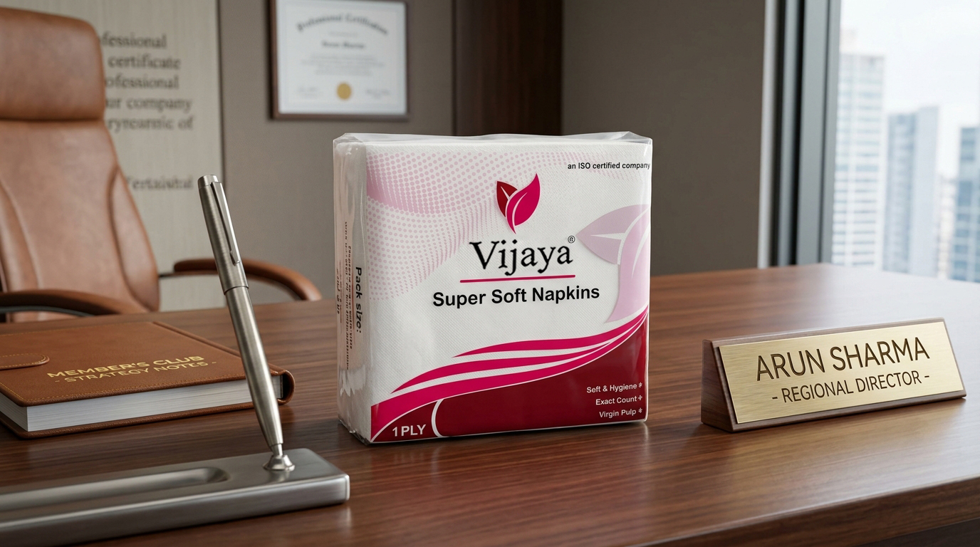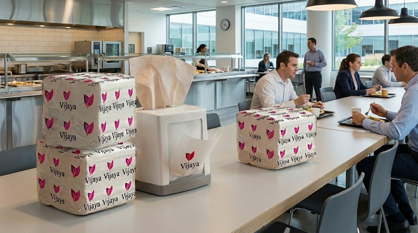 Vijaya Napkins are made from soft, strong, and highly absorbent paper, providing a hygienic and convenient solution for everyday dining and cleaning needs.